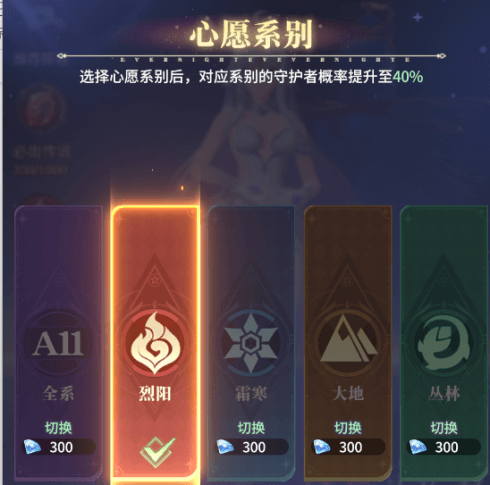 (1)開局完成150次契約召喚左右,左側就會出現心愿系別,一定要記得選擇自己玩的主系,這樣抽卡時會更容易抽到所選系別的史詩守護者,獲得更多主系的守護之魂